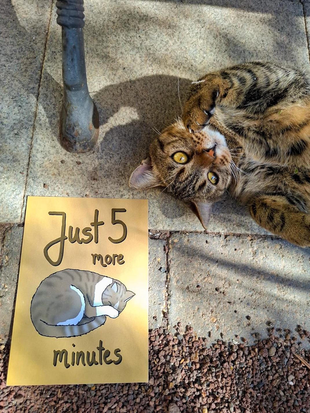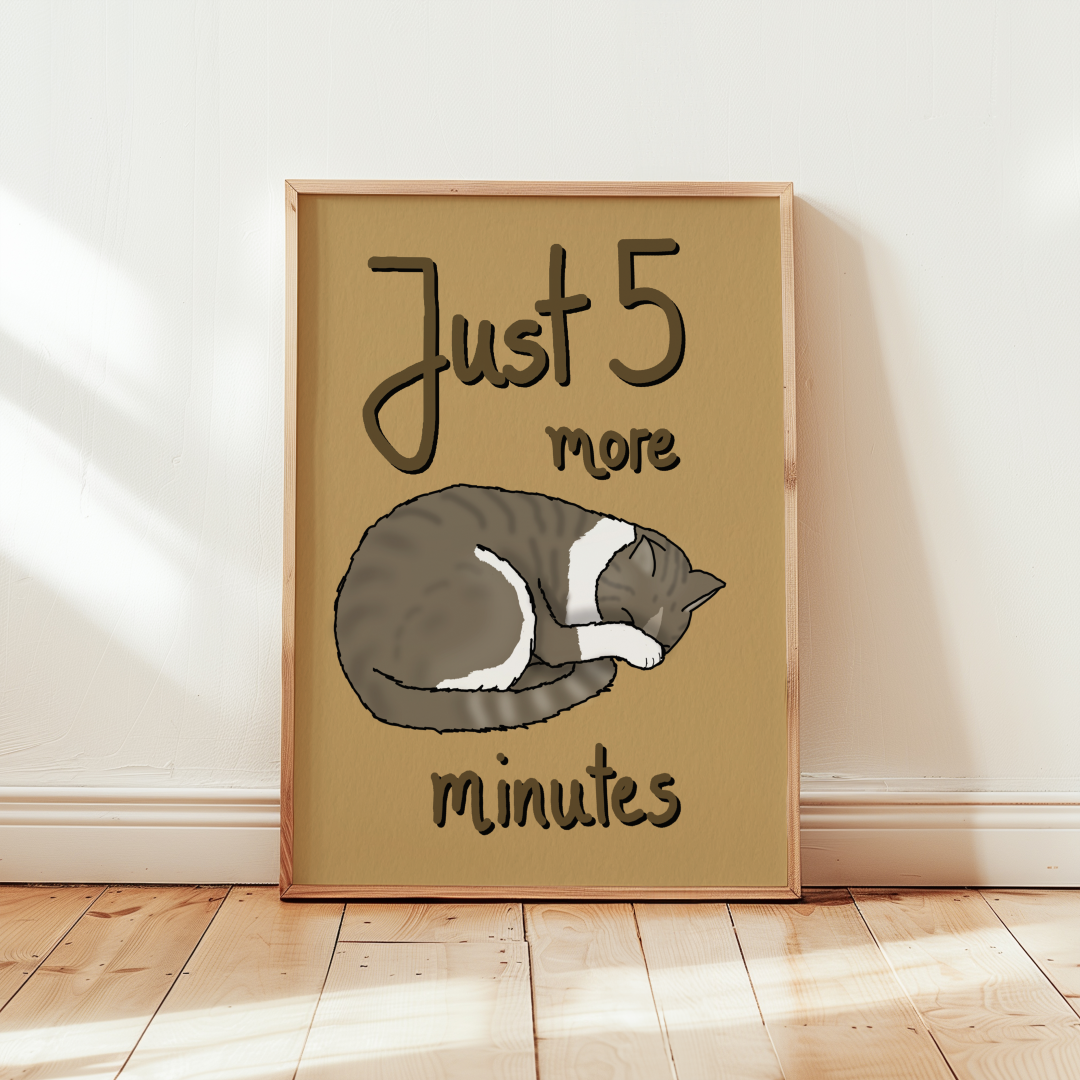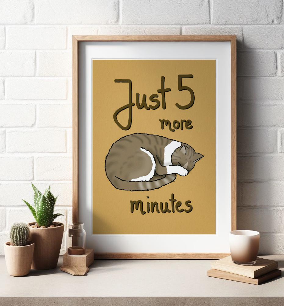 Cat Just 5 More Minutes Cute A5 Art Print Sleep Nap Cat