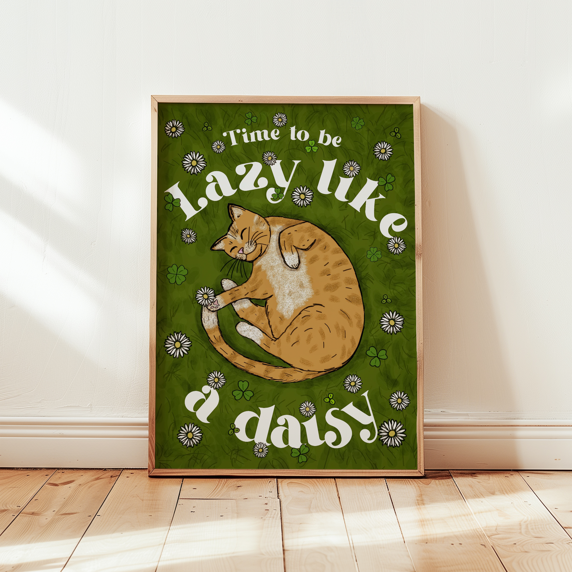 Lazy Like a Daisy Cat Print